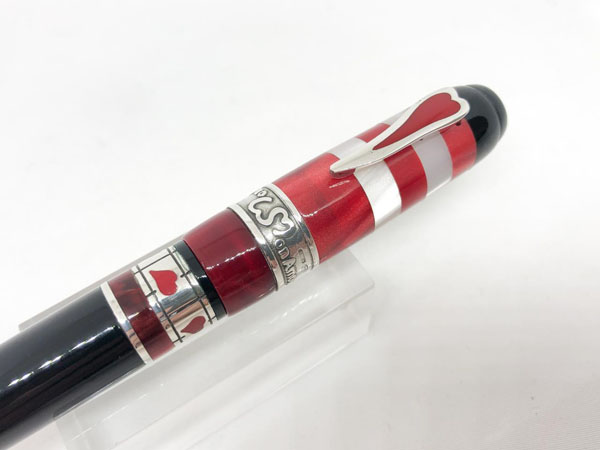 ブラックのボディにレッドのキャップのカラーリングが非常に可愛い一本で、クリップ部分もハートマークになっています。