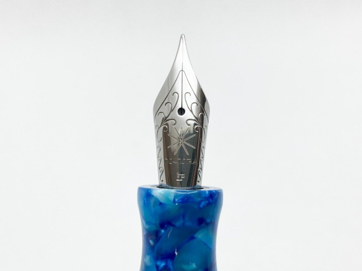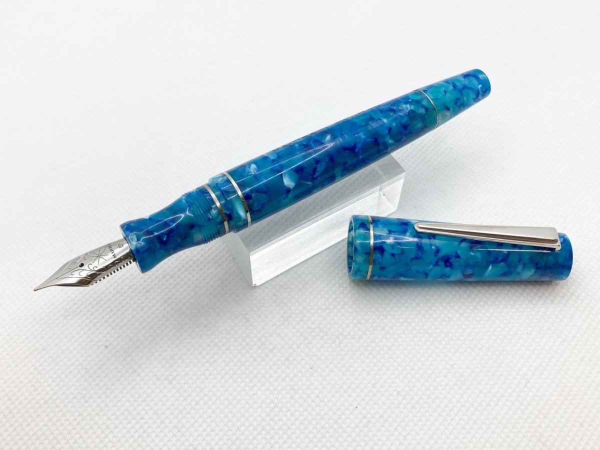 ブルーマーブルのボディにシルバーのクリップとペン先が色の対比として使用されており、カラーリングが非常に可愛い1本です。
