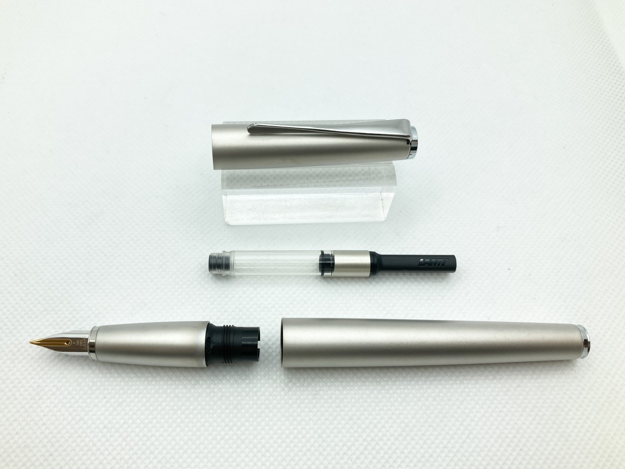 ラミーの中では落ち着いた印象のシリーズで、全体が金属(ステンレススチール)のボディとなっており、パラジュームコートが施されています。