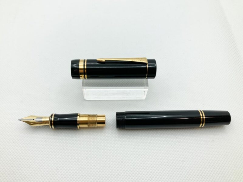 見た目はシンプルなブラックとゴールドのカラーデザインで高級感のある万年筆です。